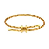 AIMADE Bracelets for Women Girls Adjustable Charm Bracelet, 18k Gold-plated Buckle Design Titanium Steel Wire Rope Women's Gift Jewelry (Gold)