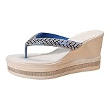 Orthopedic Platform Wedge Sandals For Women With Arch Support Fashionable Toe Thong Shining Pearl Flip Flops Comfortable Open Toe Womens Slippers Casual Summer Dressy Beach Walking Shoes (G, 9)