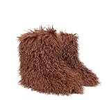Women's Faux Fur Mid-Calf Boot, Y2k Winter Furry Long Hair Sheep Flat Heel Boots, Ladies Anti-slip Plush Boots, Fashion Warm Big Puffy Boots, Outdoors Snow Short Boots, Long Curly Hair Slip On Shoes