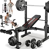 OPPSDECOR Adjustable Weight Bench Set with Squat Rack, 3 Sec Folding Workout Bench for Full Body Exercise, 600LBS All-in-One Bench Press with Leg Curl & Leg Extension, Incline Decline Flat Home Gym Bench