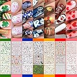 Whaline 18 Sheets St Patricks Nail Art Stickers All Holiday Nail Decals All Season Valentine Day Fall Halloween Winter Christmas 4th of July Self-Adhesive Nail Decals for DIY Manicure Party Decor