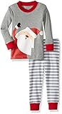 Sara's Prints Baby Girls Unisex Kids All Cotton Long John Pajamas, Santa on Heather Gray, 24M