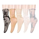 Benefeet Sox Women Lace Socks Sheer Women Fashion Girls Tulle Socks Fancy Vintage Floral Decorated Sock Novelty Lace Up Slouch Mesh Ankle Colorful Loose Clear Sock, 5 Pack