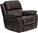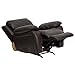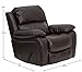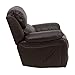 The Brown Leather Rocker Recliner with generously padded arms and bustle back cushions cradles you in comfort.Soothe your frazzled nerves with a rocking motion or pull the lever up to recline and take a well-deserved nap. This comfortable and attractive easy chair supports your neck and back while you kick back and enjoy some quiet time, watch TV or relax with family and friends. The padded seat is filled with 5 inches of CA 117 fire retardant foam.Settle into this sumptuous rocker recliner after a tough day, rock your cares away and get ready for some sweet dreams.