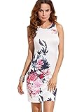 Floerns Women's Floral Short Sleeve Flower Print Bodycon Pencil Dress (Medium, Multi-white)