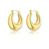 Tewiky Chunky Gold Earrings for Women, 14k Gold Plated Small Gold Hoop Earrings Hypoallergenic Oval Hoop Earrings for Women Trendy Fashion Jewelry Gifts