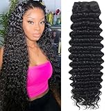 msVenus 12A Deep Wave Bundles Human Hair 16 Inches, 100% Unprocessed Indian Human Hair Bundles Wet and Wavy Raw Virgin Hair One Bundles Deal Curly Weave Bundles(Natural Color, 16 Inches)