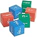Six 1 1/2-inch foam cubes 2 each of red, blue, and green with word beginnings and endings. Make up to 77 words! Foam is lightweight, soft, quiet, and washable. Square edges stop the cubes from rolling too far.