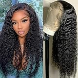 HD Transparent Curly Lace Front Wig Human Hair Glueless Water Wave Lace Front Wigs Human Hair Pre Plucked 180% Density Black Curly Wig Human Hair For Women Unprocessed Virgin Hair 24 Inch