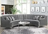 Legend Vansen L Velvet Sofa 141.34” Upholstery Curved Sofa for Living Room, Office, Apartment (Grey)