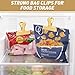 - Easy Use Chip Clips Bag Clips Food Clips-These kitchen clips for snack are very easy to use, you can clip these bag chips on the shelf of your kitchen pantry or in your refrigerator shelf for easy use, no more digging in your drawer for clips for food! A kitchen must haves chip bag sealer in your lives.
