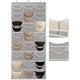 LoforHoney Hat Rack for Baseball Caps, 24 Pocket Over the Door Hat Organizer with 3 Hooks & Large Clear View Pockets, Hat Holder Rack for Door/Closet/Wall, Light Grey - 1 Pack