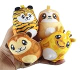 Set of All 4 Plush Safari Zoo Animal Sugar Ball - Thick Glue/Gel Stretch Ball - Molasses Syrup Ultra Squishy and Moldable Slow Rise Relaxing Sensory Fidget Stress Toy (Set of All 4 Animals)