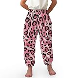 ORGYPET Girls Trousers Girls Wide Leg Pants L Slim Fit Warm Boys Lantern Trousers Boys Lantern Trousers for Girls Breathable Fabric for All Day Wear 2024, Pink Leopard Print