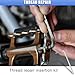 - 【Easy Installation】: Installing this stainless steel thread repair kit is straightforward. First, use the correct drill bit to clean the worn threads. Then, apply cutting oil and use the supplied tap to rethread the hole. Place the insert on the installation tool, position the adjustable ring clockwise, and finally dismantle the tang with the tang disconnecting tool.