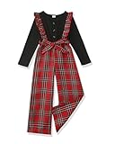 Preppy Clothes for Girl 8-9 Girls Jumpsuit Kids Fashion Ruffle Long Sleeve Wide Leg Belted One-Piece Romper Spring Winter Fall Outfits Red Plaid