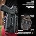 - PERSONALIZED CUSTOMIZATION: This EDC pistol holster features multiple retention adjustment points, an optic cut and open muzzle to accommodate various red dot sights, threaded barrels and aftermarket compensators; The OWB attachment is adjustable for belts up to 2-1/4"; The 1.5" IWB attachment is tuckable and both OWB/IWB attachments allow users to adjust the cant and ride height; This handgun holster is formed with premium duty grade .093 US Kydex that is waterproof and lightweight