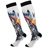 Joisal Tiger Watercolor Butterfly Floral Compression Knee High Socks for Comfort Support, Unisex all Day Comfort, 1 pair