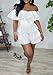 Features:Romper dresses for women, rompers for women, short rompers, one piece, off the shoulder, backless, high waist, ruffle hem, puff short sleeve, tiered layer, elastic waist, solid color, playsuits