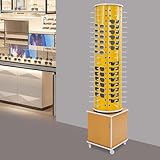xsdzgdzy Glasses Storage Display Stand,Floor-Standing Glasses Rotating Organizer w/ 4 Wheels & Storage Cabinet,Commercial Freestanding Sunglasses 360° Rotating Eyeglass Holder (All Yellow, 114 Pair)