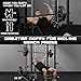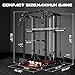 - 【Great Bang For Buck】: Transform your space into a full-body workout station with over 25+ accessories, including a tricep rope, T-bar, pull-down bar, counterweight racks with clamps, and a 360-degree landmine attachment. A bonus accessory to enhance your training program. Despite its robust build, this power cage only occupies 17.88 square feet of floor space, making it perfect for apartments, garages, or small home gyms.