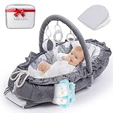 Newborn Lounger Leaf Gray - Flexible & Portable w/Infant Support Cushion, Soft & Breathable 100% Cotton - Multi-Use Supervised Baby Lounger for Floor, Travel, Changing Mat Alternative - Premium