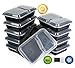 Green Direct (20 Pack 2 Compartment Meal Prep Container Bento Box with Lid Leftovers 21 Day Fix Portion Control Black Bottom Clear Cover Microwave Safe Good for Kids Lunchboxes School Lunch