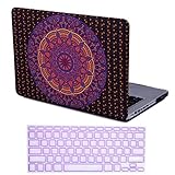 HDE MacBook Pro 13" Retina Case Mandala Pattern Designer Hard Shell Rubber Coated Plastic Cover with Keyboard Skin fits No CD Drive Models A1425 / A1502 (Purple and Teal)