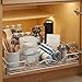 - RELIABLE SHELF INSERTS FOR CABINETS: Our adjustable sliding cabinet organizer features elegant heavy wire construction which is durable enough to handle up to 50 pounds.