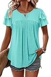 CRAZY GRID Women's Summer Ruffle Sleeve T-Shirts Elegant Blouses Loose Fit Maternity Tops Fashion Solid Color Tunic Top Water Green-XXL