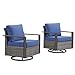 HUMMUH Outdoor Swivel Rocker Patio Chairs Set of 2-All Weather Wicker Swivel Rocking Chairs Outdoor Chairs for Deck Porch Poolside Balcony-Grey/Blue