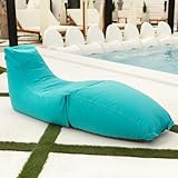 Innovative Chic Lounger Outdoor Bean Bag Chair Supportive Tapered High Back & Roomy Seat | Teal Blue Color All Seasons Soft Plush Cozy Fluffy Chaise Lounge Removable & Machine-Washable Cover