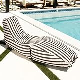 Innovative Chic Lounger Outdoor Bean Bag Chair Supportive Tapered High Back & Roomy Seat | Taupe & White Strips All Seasons Soft Plush Cozy Fluffy Chaise Lounge Removable & Machine-Washable Cover