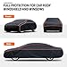 - Windproof and Stable Design: There are three windproof buckle straps at the bottom of the hood to secure the hood to the car. The elastic bottom edge fits closely around the engine hood and the entire car, ensuring that the car cover will not shift in harsh weather conditions.