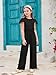 Haloumoning Girls Jumpsuit Kids Fashion Ruffle Cap Sleeve Wide Leg Rompers One Piece Outfits with Pockets