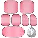 Hanaive 7 Pieces Car Window Shades Car Sun Shade Windshield Set Includes 3 Front Rear Sun Visor for Auto, 4 Side Window UV Rays and Heat Protection, Foldable with 12 Suckers(Medium,Pink)