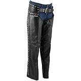 Milwaukee Leather LKL6705 Women's Classic Black Leather Motorcycle Biker Rider Chaps w/Rivet Detail - 3X-Small