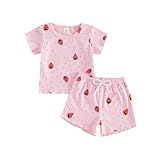 fhutpw Toddler Baby Girls Summer Outfits Daisy Ruffle Short Sleeve T-Shirts Tops Floral Shorts 2Pcs Clothes Set 6M-4T (Strawberry- Pink, 3-4T)