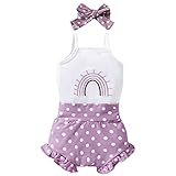 Summer Baby Girl Rainbow Embroidered Camisole Romper Polka Dot Shorts Three Set Baby Pants Set Fashion (RD2, 0-3Months)