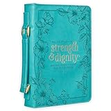 Christian Art Gifts Women's Fashion Bible Cover Strength and Dignity Proverbs 31:25, Teal Faux Leather, Medium