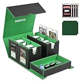 Card Deck Box for MTG with Commander Display, 5 in 1 Card Storage Box Fits 400+ Double-sleeved Cards, Removable Deck Case for TCG/Sports Cards with Dice Tray, 4 Magnetic Card Holders (Black Green)