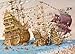 The triangular box series of jigsaw puzzles by Heye includes cartoon and finely detailed puzzles. This one is no exception. Corsair has 1000 pieces and artwork by Guillermo Mordillo. It features a people filled armada of ships near the shore. The finished puzzle measures 50x 70 centimeters. Made in Germany.