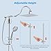- [Upgraded Extension Arm] The height and angle adjustable 18'' extension arm avoids collision with the rain shower head, maintaining its position perfectly for a comfortable shower experience. Crafted from brass and stainless steel, the 18'' and 11.4'' extension arms ensure anti-corrosion. This shower arm extension is compatible with all standard shower plumbing in the U.S. 1/2" IPS male thread. Before ordering, please measure the size of your shower plumbing