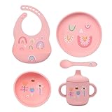 Imagination Junction silicone baby feeding set, Baby Led Weaning Supplies,Cutlery Feeding Supplies, Baby Utensils Feeding Essentials for Starting Solids,5 Piece Set (pink)