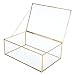 Clear Glass Box Design: Store your trinkets and treasures beautifully in this rectangle glass jewellery box featuring gorgeous gold edges, a hinged lid. Real brass gives each box a unique, antique look.