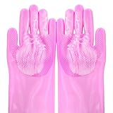 Molain Pet Grooming Gloves, Dog Washing Gloves, Heat Resistant Silicone with High-Density Teeth Enhanced Five Finger Design for Bathing and Massaging Dogs and Cats(1 Pair, Pink