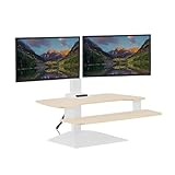 Vari VariDesk Premier Electric Converter -All-in-One Standing Desk Height Adjustable Riser - USB-A & USB-C - Ideal for Home Office Workspace - Dual Monitor Mount Computer Workstation (Light Wood)