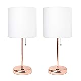Simple Designs LC2002-RGD-2PK Rose Gold Stick Table Lamp Set with USB Charging Port and White Fabric Shades, 2 Pack Set