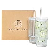 All Glass Iced Coffee Cup with Lid and Straw (16oz striped)