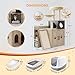 - Hidden Litter Box: Has 6 ventilation openings for better air circulation and odor reduction. These designs ensure privacy and effectively stop the dog from entering. Its spacious interior (17.3” D x 22.7” W x 21” H) fits most standard litter pans. It also doubles as a cat rest area or storage unit to keep your home neat